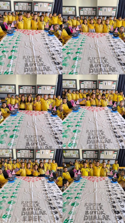 Okulumuzda Filistin'e destek olmak, öğrencilerimizde farkındalık yaratmak amacıyla bazı etkinlikler gerçekleştirildi. El izleriyle bayrak yapma,bileklik yapma,boyama kağıtları vb etkinlikler gerçekleştirildi.